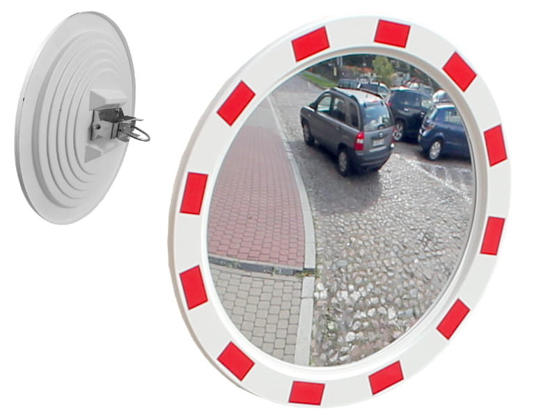 Dla poprawy bezpieczeństwa w miejscach o ograniczonej widoczności oferujemy okrągłe lustra drogowe (np. o średnicy 50 cm).